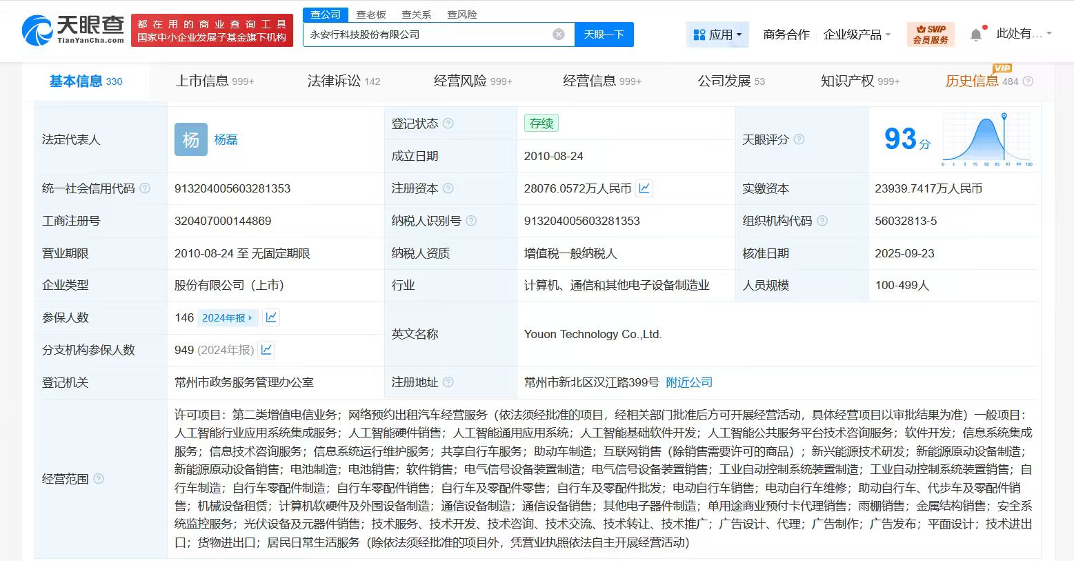 天眼查App显示,近日,永安行(603776)发生工商变更,注册资本由约2.4亿人民币增至约2.8亿人民币,增幅约17%。
