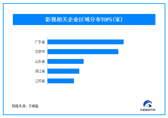 天眼查专业版数据显示,截至目前,我国现存影视相关的企业有82.2万余家,从地域分布上看,广东省、北京市、山东省影视相关企业数量位居前列,分别拥有13.2万余家、12.3万余家、6.3万余家;从成立时间来看,近一半的相关企业成立于5年内,成立于1年内的相关企业占比18.97%。